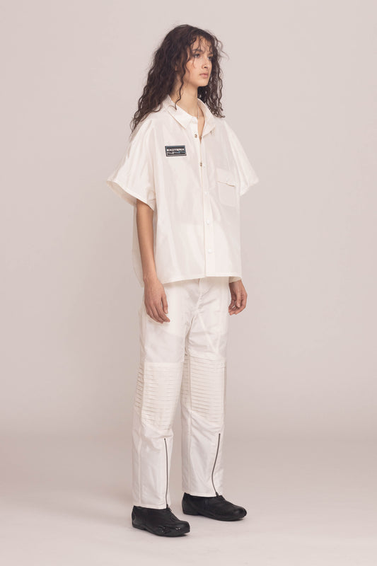 WHITE SILK TAFFETA MOTO PANT